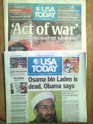 Title (ebay affiliate link): USA Today Act of War 9/12/01, Osama Dead 5/2/11 MINT!!