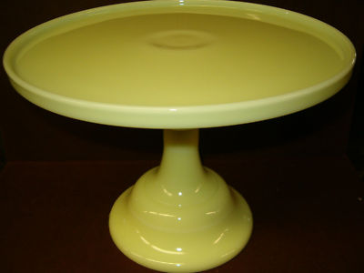 VASELINE URANIUM GLASS CAKE STAND / PLATE PEDESTAL MILK