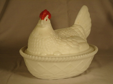Vintage FC Milk White Glass Hen & Basket Candy Dish