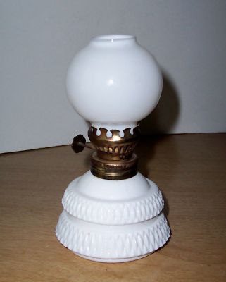 Minature Kerosene Oil Lmp -WHITE-MILK GLASS-