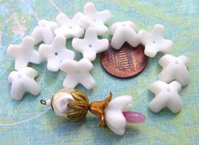 Vintage 14mm Milk Glass 4 Petal Flower Beads