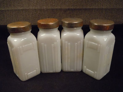 Lot of Four Hoosier Cabinet Milk Glass Spice Jars