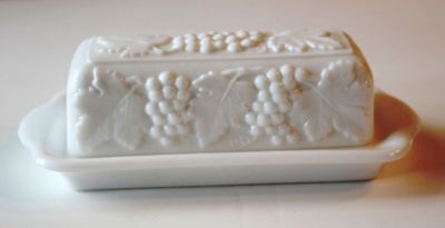 Vintage Imperial White Milk Glass Grape Butter Dish