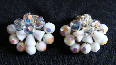 Vintage Milk Glass & Aurora Borealis Crystal Earrings