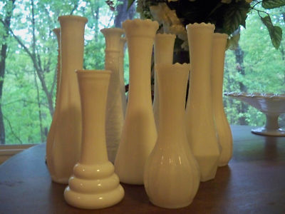 Antique Lot 13 Milk Glass vases Brody wedding bridal