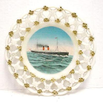 1900 LALORRAINE MILK GLASS RIBBON PLATE-FRENCH LINE