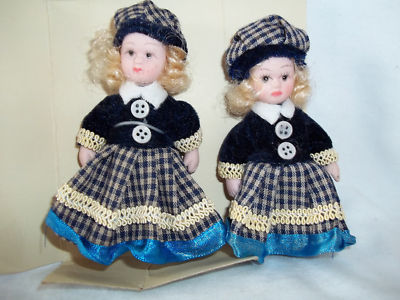 Miniature Antique Twin Porcelain Dolls 4" Tall