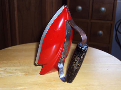 Primitive Red Tin & Wood "Sunny Suzy" Child's Toy Iron