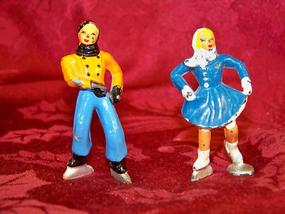 ANTIQUE BARCLAY BOY & GIRL SKATING VINTAGE SKATERS