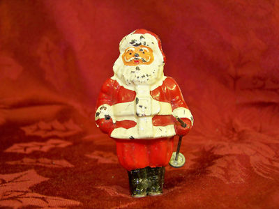 ANTIQUE BARCLAY SANTA ON SKIS VINTAGE SKIING