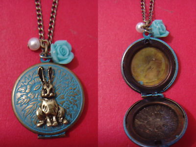 Title (ebay affiliate link): Handmade Antique Blue Rabbit Charm Round Floral Locket