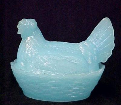 Milk Blue Depression Glass Hen on Nest Trinket Dish New