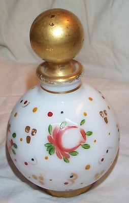 Vintage Rose Painted White Milkglass Perfume Bottle