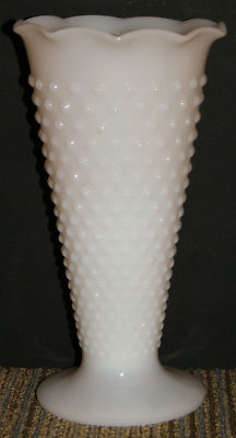 Vintage 9 1/2" HOBNAIL White Milk Glass Vase Ruffle Top