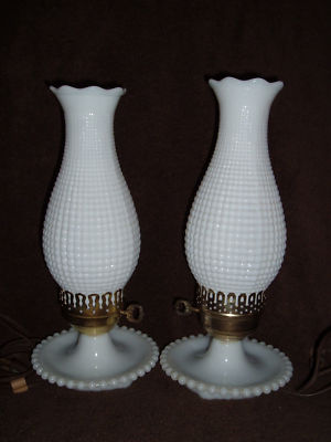 TWO OLD HOBNAIL MILK GLASS LAMPS