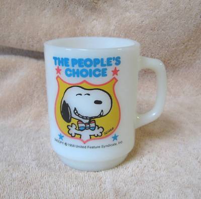 Vtg Anchor Hocking Milk Glass Snoopy Coffee Cup Mug