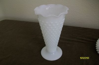 White Milk Glass Vase Hobnail Sides Scalloped Rim