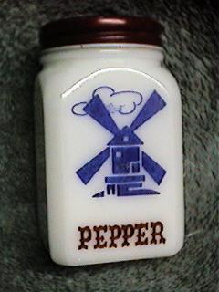VINTAGE MILK GLASS PEPPER SHAKER/WINDMILL-ADVERTISING