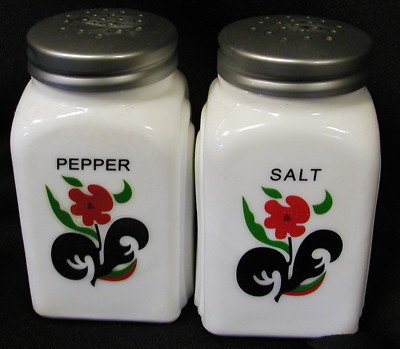 Milk Glass Arched Salt & Pepper Shakers w/Flowers