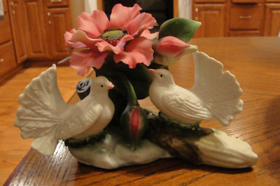 CAPODIMONTE DOVES FLOWERS LOVE BIRDS FIGURINE ITALY