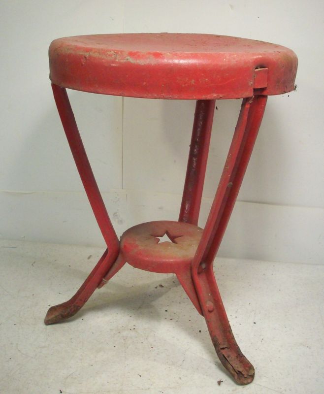 vintage old METAL RED STOOL Primitive Milking Farm