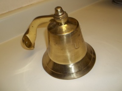 Title (ebay affiliate link): Solid Brass Bell with USN (U.S. Navy) Imprinted USED
