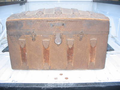 ANTIQUE WOOD METAL TRUNK AUGUSTA TRUNK FACTORY GEORGIA
