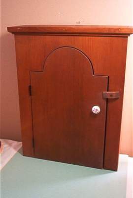Title (ebay affiliate link): Vtg Stained Pine Cupboard Wall Cabinet Arch Door 20x15"