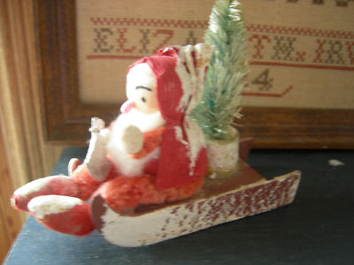 VINTAGE SPUN COTTON CARDBOARD SANTA SLEIGH ORNAMENT