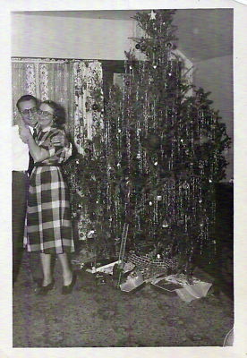 Title (ebay affiliate link): Real Photo Xmas 1950s. Couple Hugging, Ladder Toy