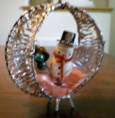 Title (ebay affiliate link): VINTAGE 30's SPUN COTTON SNOWMAN ORNAMENT w TOP HAT ???