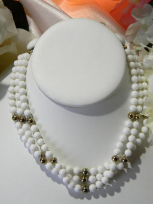 Vintage Early Japan White Milk Glass Bead Necklace