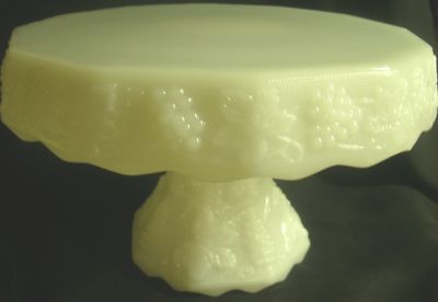 CABLE & GRAPE Milk Glass SKIRTED PEDESTAL CAKE PLATE