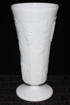 Vintage Milk Glass Tall Vase Harvest Grape Indiana Vine