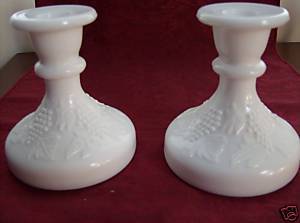 Milk Glass Candlesticks Grape/Leaf Pattern (2)