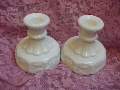 Westmoreland Paneled Grape Milk Glass Candle Holders