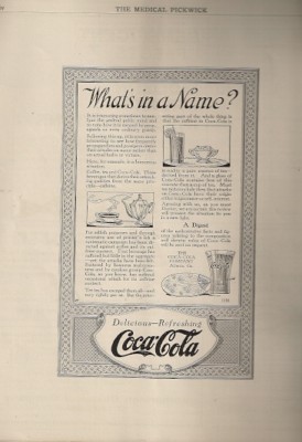 '17 COCA'COLA RARE MEDICAL PICKWICK WHAT'S IN A NAME?AD