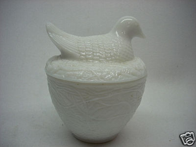 Vintage Milk Glass Bird on Nest Dish Avon 1970 Lovely