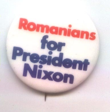 Romanians for Pres Nixon Official '72 button V McGovern