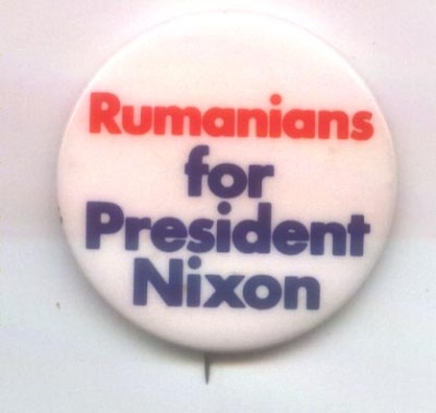Title (ebay affiliate link): Rumanians for Pres Nixon Official '72 button V McGovern