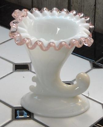 PINK CREST MILK GLASS CORNUCOPIA VASE FENTON?