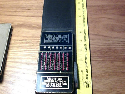 ANTIQUE BABY CALCULATOR CHICAGO USA METAL W/ORIG CASE
