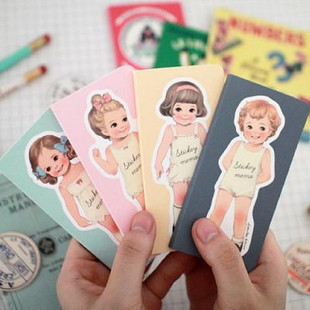 Cute Vintage Paper Doll Post it Note Pad Memo 4 pcs set