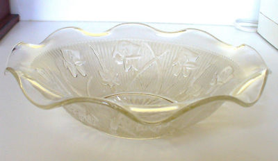 VTG IRIS & AND HERRINGBONE 9-1/2" CLEAR RUFFLED BOWL
