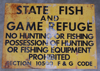 STATE FISH & GAME REFUGE California non-porcelain sign