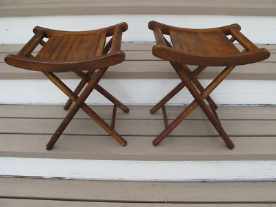 Title (ebay affiliate link): Two Small Vintage Oak Folding Stools/Bench/Table Stand