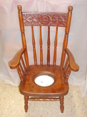 Title (ebay affiliate link): Antique Pressed Back Childs Potty Chair w Porcelain Pot