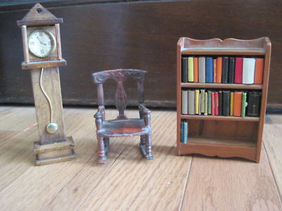 Title (ebay affiliate link): Antique doll house furniture: Clock, book case, chair