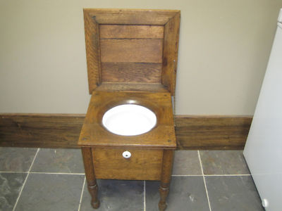 Title (ebay affiliate link): ANTIQUE OAK COMMODE CHAMBER POTTY PORCELAIN POT PAN