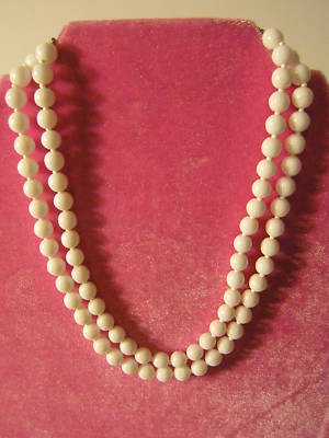 Vintage Estate Milk Glass Double Strand Necklace - FAB